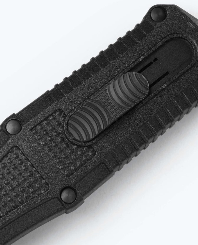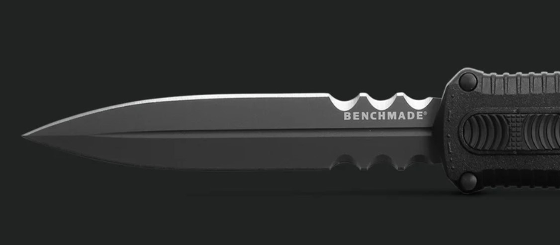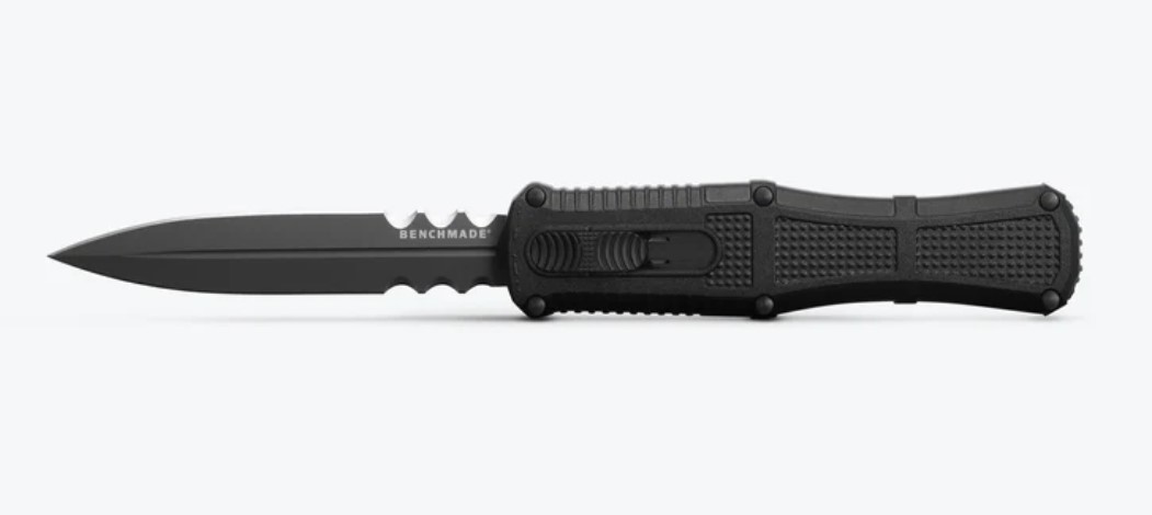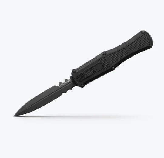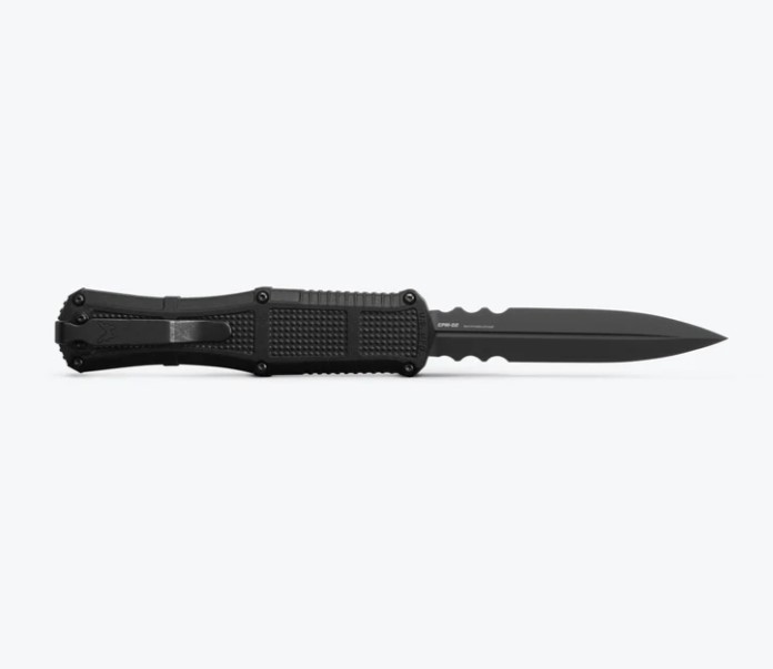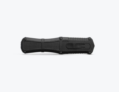 Known for its iconic ball-bearing matrix texturing, lightning-fast automatic actuation and strength and durability through hard-use tasks, the new 3370SGY Claymore OTF expands your options for powerful tactical self-defense and performance. The new out-the-front configuration features a slider release button and double-edge CPM-D2 dagger housed in a lightweight Grivory® handle for ambidextrous confidence and hardcore utility in stressful situations. Choose between Black or Ranger Green handles and a plain edge or the new oversized dual-serrated blade